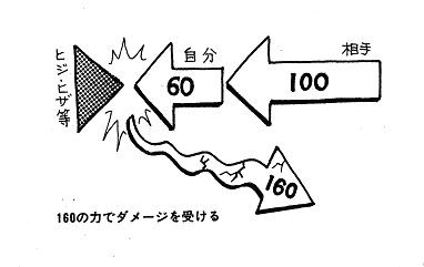 例】100の力で殴ってきた相手に対し、60の力しかない自分では勝つことは できませんが、相手の100の力を自分のものにできれば、160の 力になって 相手に勝つことができる訳です。